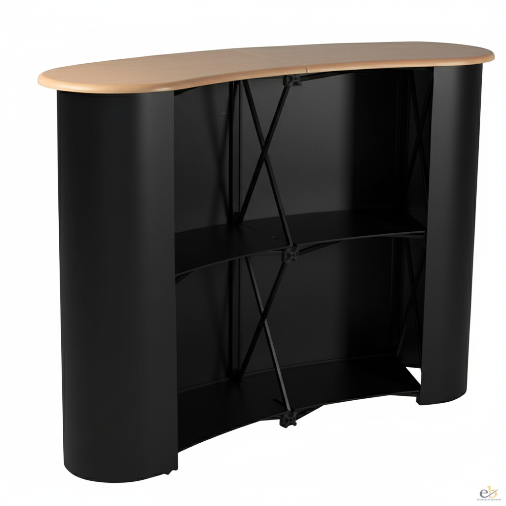 Premium, custom-branded exhibition counters to anchor your trade show booth, offering a professional welcome area and secure storage in the UAE.