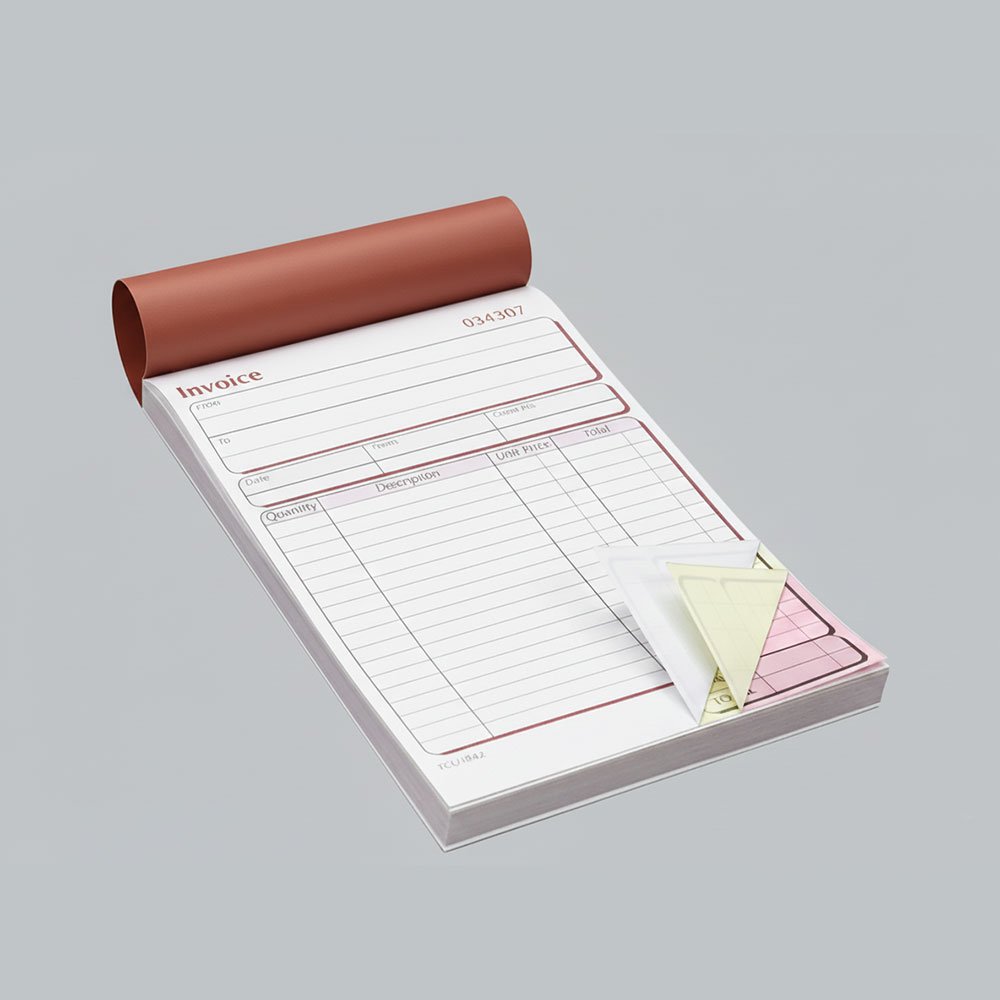 Key Features We Offer: Duplicate (NCR – No Carbon Required) and Triplicate sets for easy distribution to your client, accounts, and internal records; Sequential numbering for robust financial tracking; Perforated pages for clean tear-off; and Hard-wearing covers for durability in any environment. We also offer specialized layouts to accommodate VAT calculations and local compliance standards.